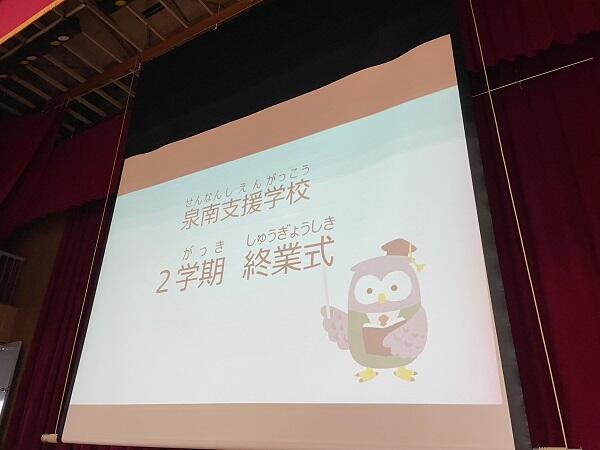 12月24日(水)、2学期の終業式を行いました。小学部、中学部、高等部の児童生徒が体育館に集合し、とても元気よく「おはようございます!」とあいさつをしていました。そして、校歌もとても明るい声で歌っていました。明日から冬休み。楽しく過ごしてほしいと思います。