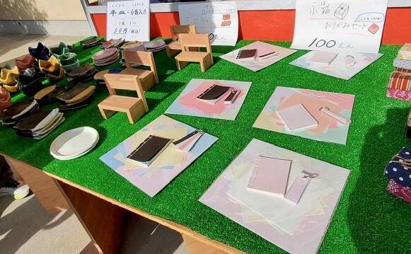 子どもたちが、学校で育て、収穫した野菜や、お皿などの作品がたくさん並んでいます。当日は授業参観も実施していたので、たくさんの保護者のみなさまが、野菜などを買い求めてくださりました。本当に、これまでにない、大盛況となりました!!