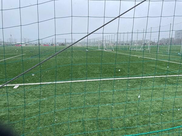 当日の気候は、強い寒気が日本上空に覆われたため、海風も非常に強く、雪もかなり降って、人工芝のフィールドが真っ白になるくらいになりましたが、生徒たちは最後まで元気よく、走りぬくことができました。4つの試合のうち、3試合、勝ち抜きました!よく頑張りました!!