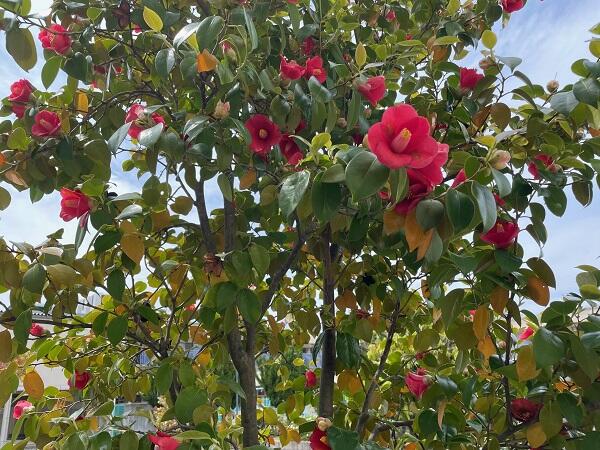 校庭の椿の花が見ごろを迎えています。いよいよ本格的な春らしい気候になってきました。