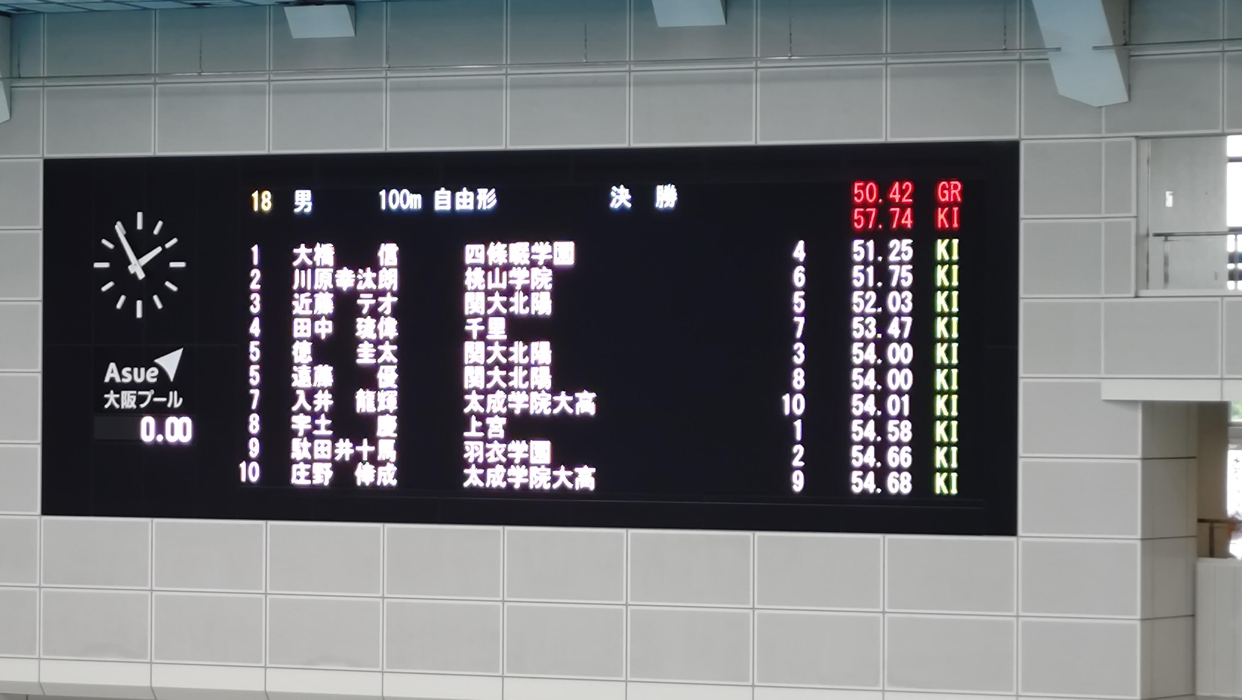 2年の田中琉偉くんは男子100m自由形で4位入賞、