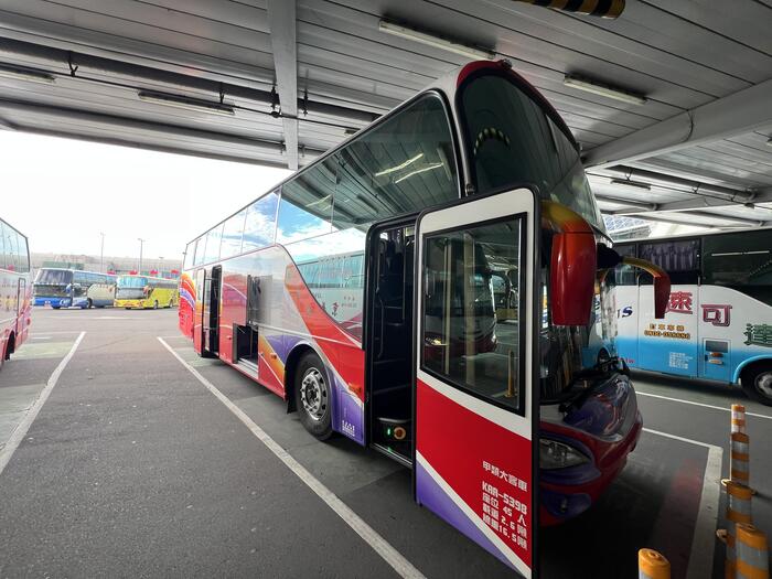 飛行機の出発が遅れたため到着も遅れましたが、全員無事に台湾に到着しました。現地時間15時に現地ガイドの方と合流し、バスで台湾国立大学へ向かっています。大学では、施設見学および研究室訪問を予定しています。
