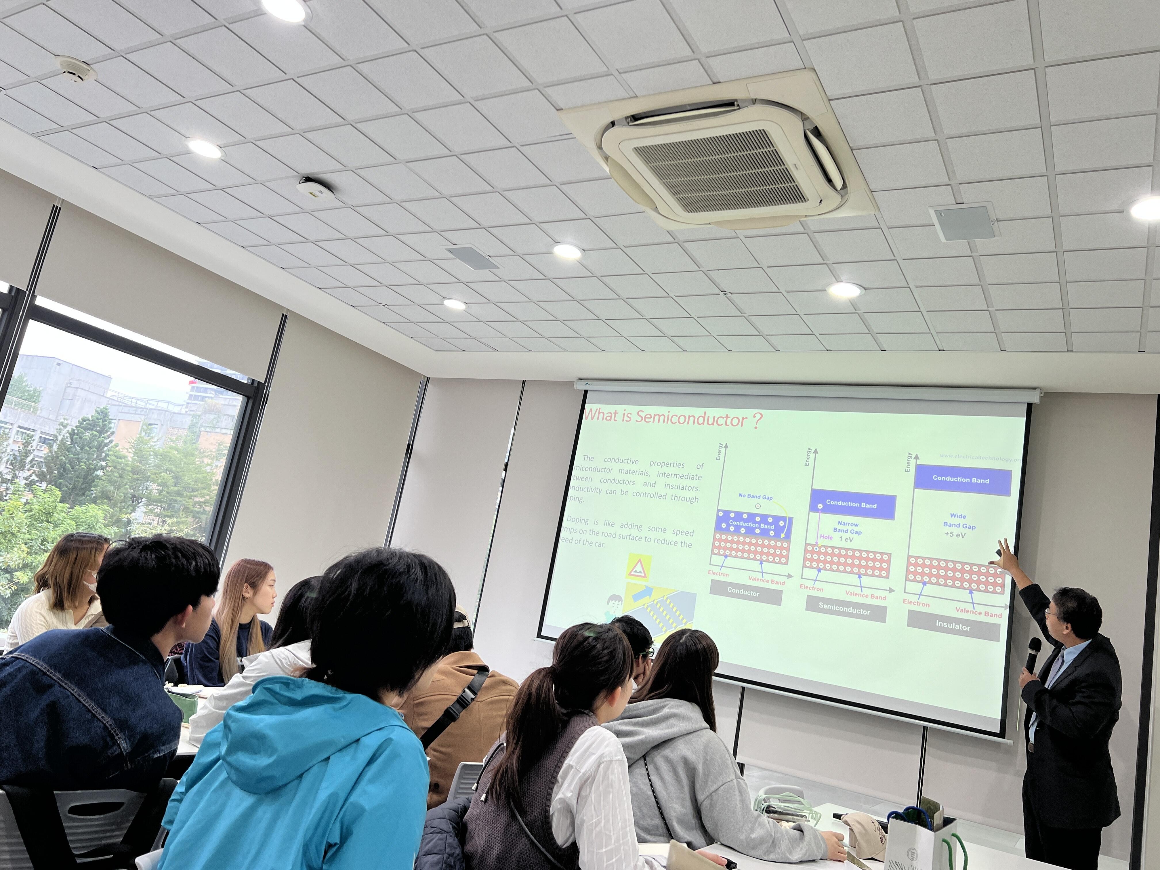 台中から台北に移動し、台北科技大学を訪問しました。1日目に訪れた国立台湾大学(NTU)と同じく台北科技大学も国立の大学で、トップレベルの科学教育を行っています。半導体に関する講義を英語で受け、質問を英語で行いました。半導体に関する基礎知識を携えて、この後は、TSMCイノベーション館に移動して施設見学を行います。TSMCは台湾が誇る世界一の専業半導体ファンドリーです。