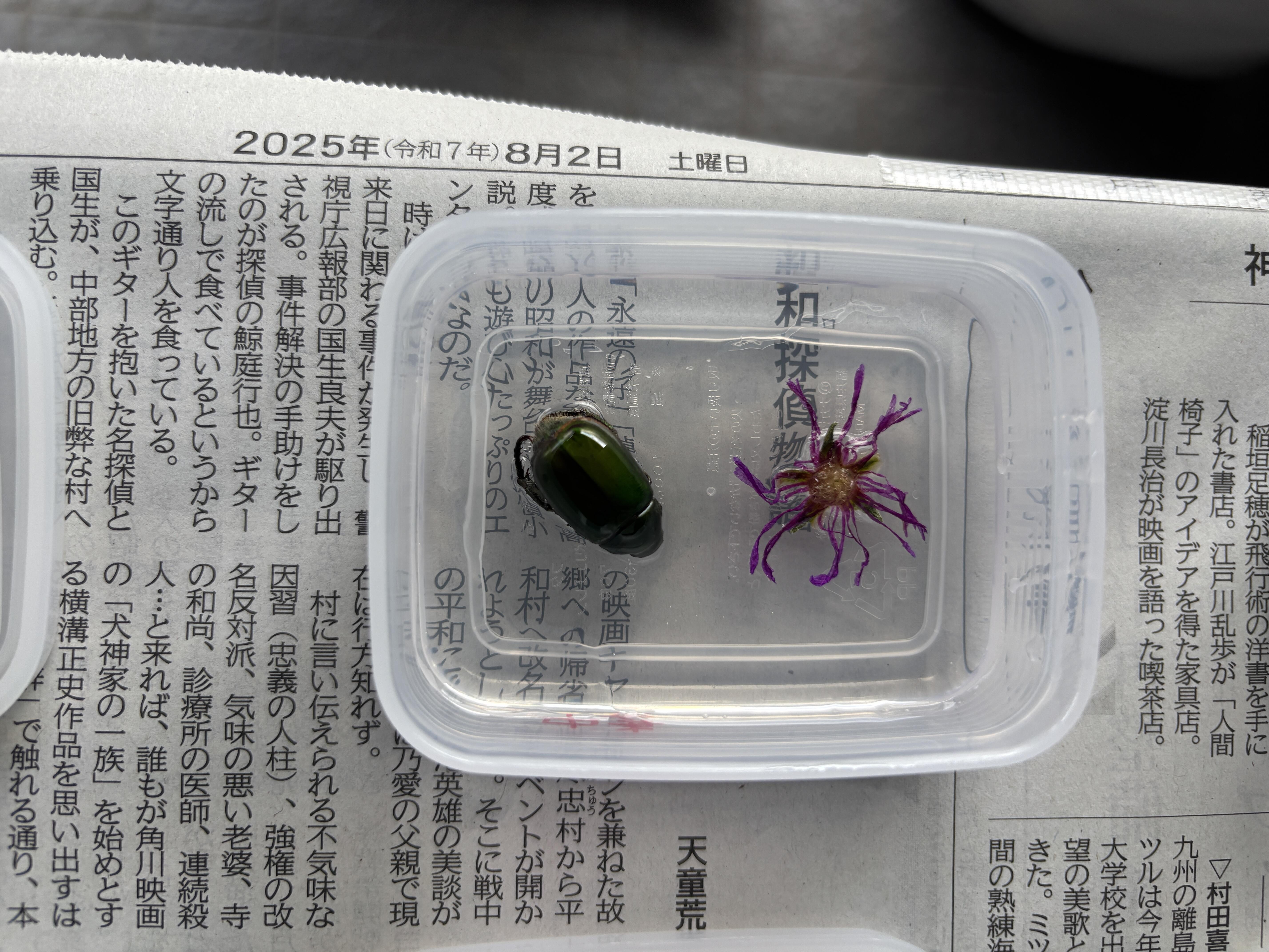 兵庫県立人と自然の博物館は、人と自然の関わりを多彩な展示と体験で学べる日本最大級の博物館で、充実した体験型プログラムも用意されています。私たちは封入標本をつくるプログラムを行いました。封入標本とは動植物・鉱物・昆虫などの標本を透明な合成樹脂(アクリル樹脂やエポキシ樹脂など)の中に封じ込め、観察や保存ができるようにしたものです。担当していただいた研究員の方はユーモラスかつ幅広い知識を持っており、標本の素材や加工について丁寧に解説してくださいました。その説明に、生徒たちは興味深そうに聞いていました。