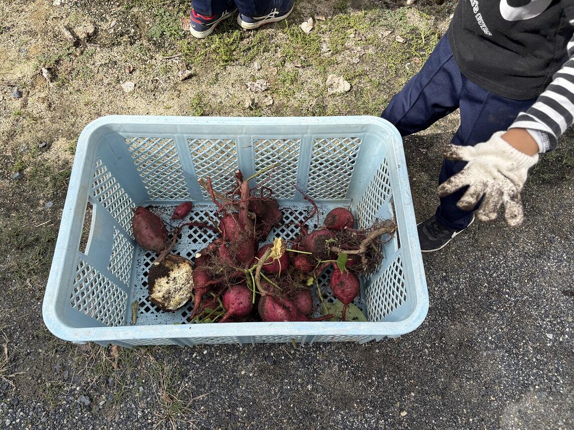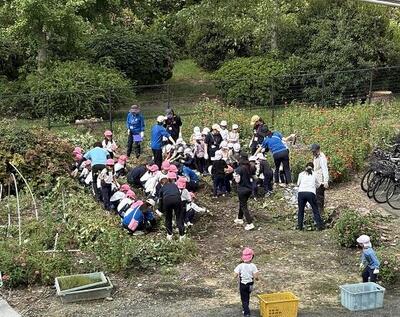 アトリオみなみおかこども園、とねやまこども園の子どもたちが芋掘りに来校しました。