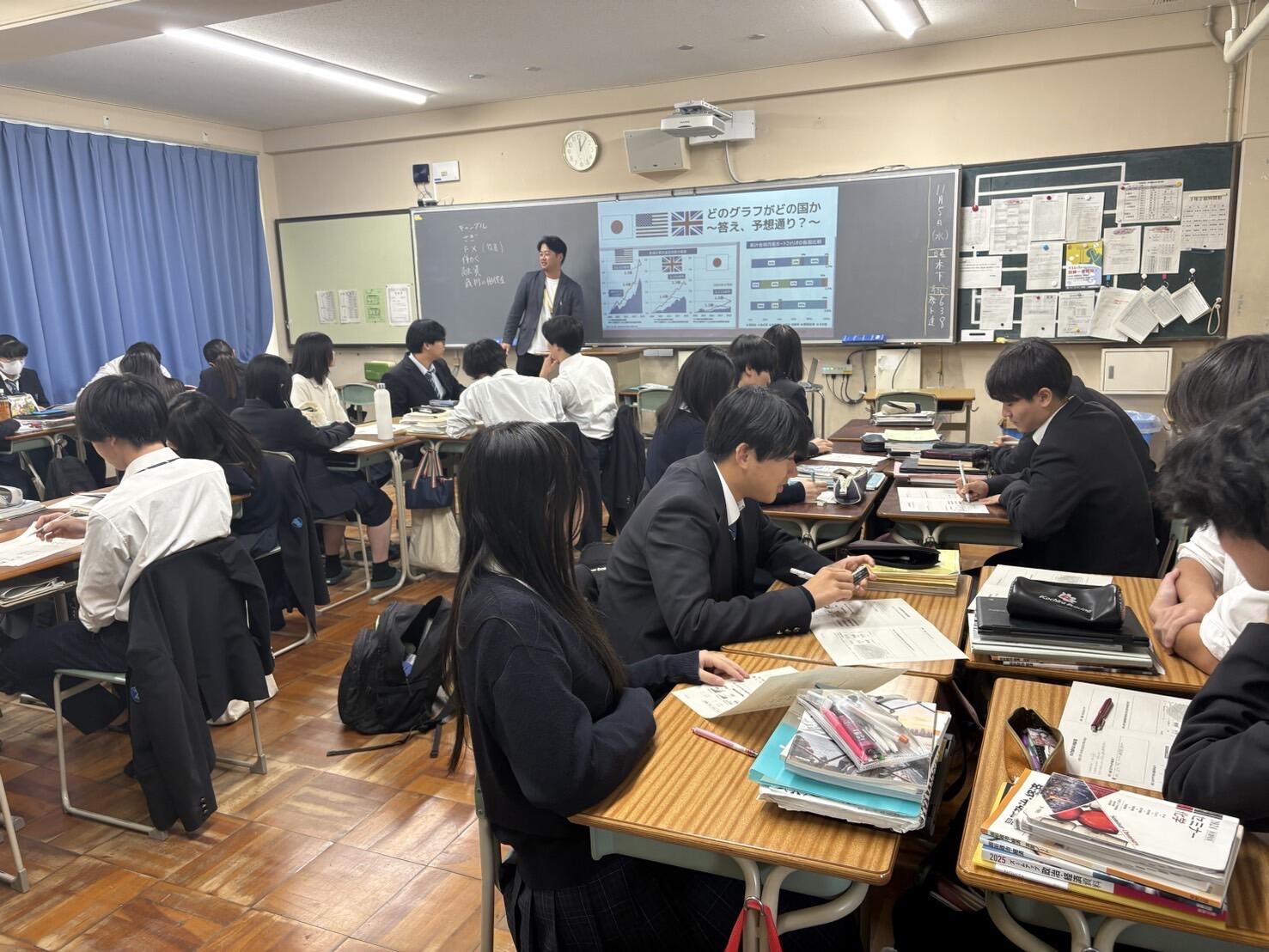11/5(水)4限、3年生の政治経済選択者29名を対象に、株式会社オールワンエージェントの蒲田侑樹さんを講師にお招きし「大人も知らないお金の話」と題して金融教育を行いました。