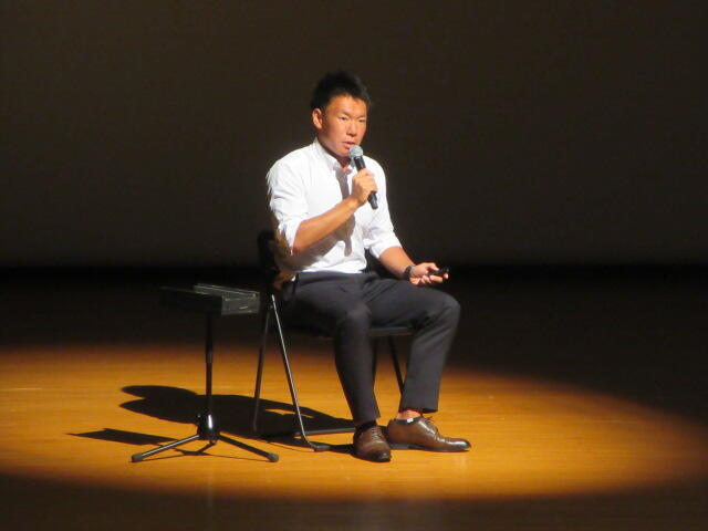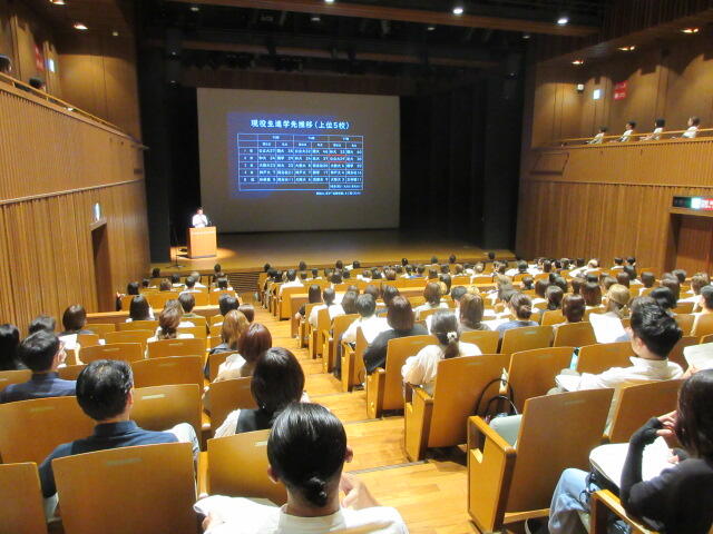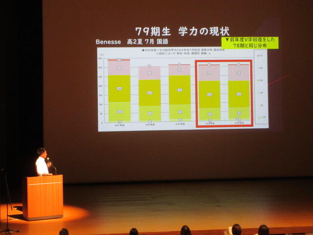今日(10月1日)の午後、フェニーチェ堺で2年生の保護者の方々を対象に「進路説明会」を開催していました。2年生の学力の実態、本校の進学実績、文化祭の様子、2週間後に出発する修学旅行など、内容は多岐に渡った説明会でしたが、一番は卒業生に登壇してもらってのインタビューだったかもしれません。保護者の皆様には74期生、横田さんの在校時代の様子はもちろん、大学生・院生としてのリアルな下宿生活(in 名古屋)を聞いて頂くことが出来ました。