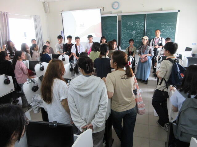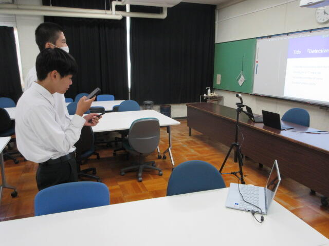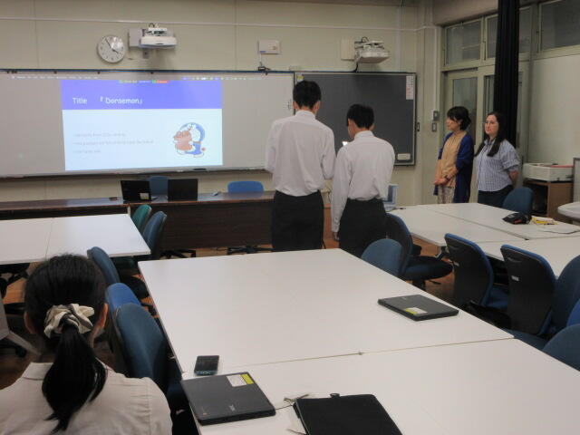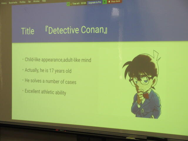 ↓ 本番を想定しての発表練習。日本のアニメを紹介するようです。