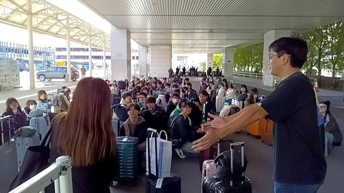 ↓ 一行は3団に分かれての旅立ちです。こちらは伊丹空港出発組。関空からも2団が出発しています。
