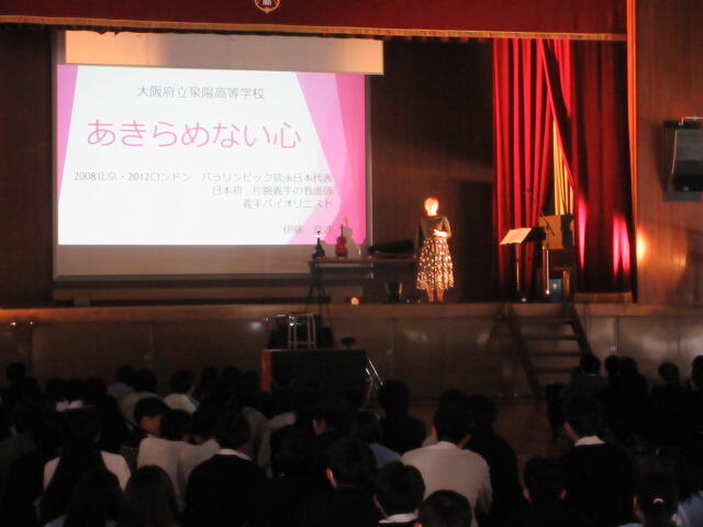講演終了後は涙ぐむ生徒も。生徒たちにとっては、周囲の支えや励ましがあって「諦めない心」が育まれる、ということを学ぶ講演になりました。お互いに、支え、支えて貰い、励まし、励まされて皆が「諦めない心」を持つことになるのでしょうね。