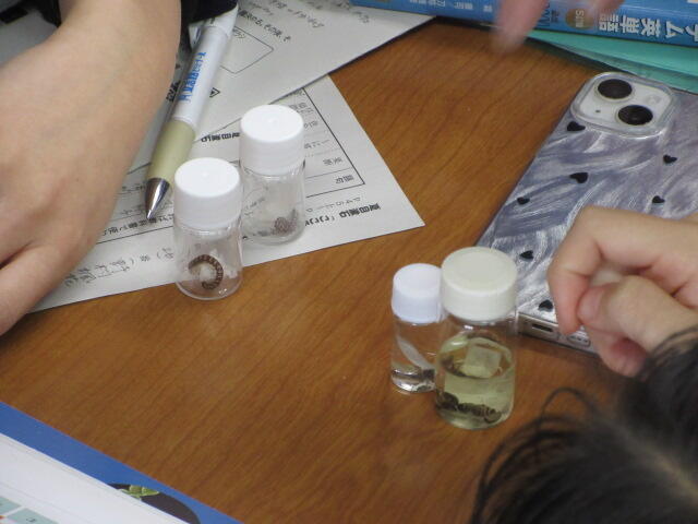この日の内容は生物の「分類」について。ウィキペディアから引っ張って記しますが、ダンゴムシとは、ワラジムシ目ワラジムシ亜目の動物のうち、陸生で、刺激などの要因で団子のような体勢になる習性を持つものを指し、全世界でなんと1500種以上。私たちが日頃よく目にする、一般に「ダンゴムシ」と呼ばれるものは、オカダンゴムシArmadillidium vulgareなんだそうです。高校生物というより、大学で学ぶ生物のような内容でした(大学で生物を学んだことがないので、知らんけど...)。