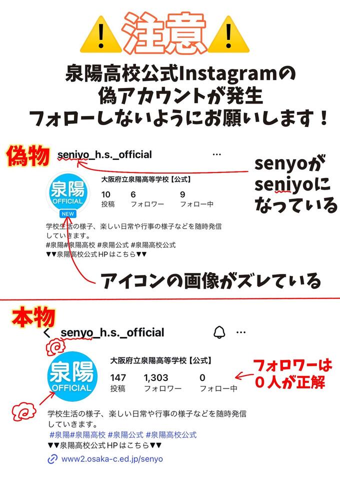 そんな中、本校「オフィシャル」の「偽アカウント」が確認されました。「うわぁ、それほど注目されるようになったかぁ」と喜んでもいられませんので、担当の先生に即刻削除要請を。するとHP上で注意喚起をするまでもなく、12日(水)夕刻には削除されていました。