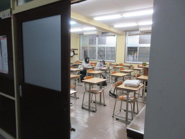 ↓ 夕刻、がらんとした校舎内に突然放送が。「ピンポンパンポーン♬ 今なら会議室で数学の質問受け付けてます~」 呼びかけに応じて集まってきた2年生たち。