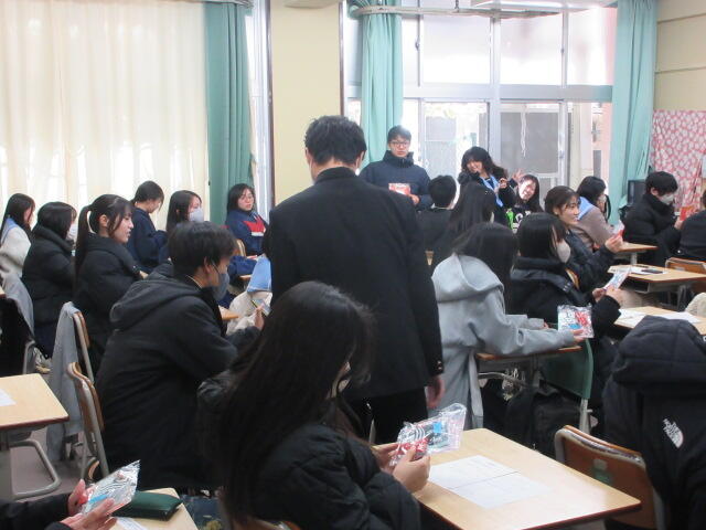 保護者の方々が受験を目前にした3年生を励ます「福を招く会」。いつから始まったのかは、寡聞にして知りませんが、3年生の保護者の方々が「豚汁」を振舞ったことに端を発するようです。この間、コロナ禍などを経て形態も移り変わり、今年は体育館が改修工事で使えないこともあって、PTA委員の方々が教室で記念品を配る方式となりました。考査がすべて終了した今日(12月5日)、各教室で保護者の方からメッセージと品々が生徒たちに贈られていました。