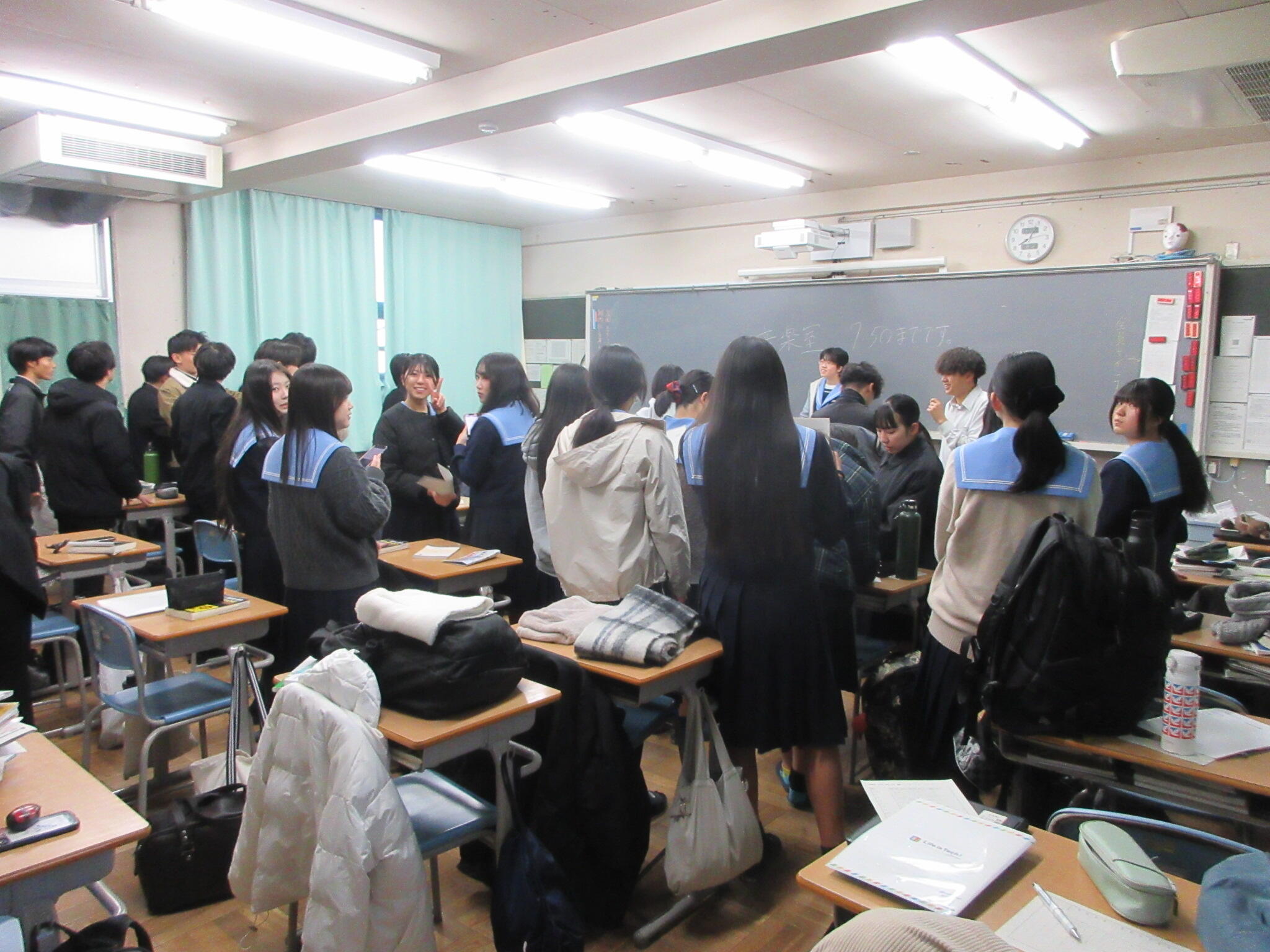 時々、朝8時前頃に校門に立って生徒たちを迎えています。こちらからの挨拶に応えてくれる生徒が多いですが、本当に爽やかに、弾けるような笑顔で「おはようございます~♪」と言ってくれる生徒がいます。本人は気付いていないかもしれませんが「これからの人生、その挨拶・表情だけで得するだろうなぁ」と思わずにはいられないほど。寒さは厳しくなってきましたが、こちらの心が温まります。