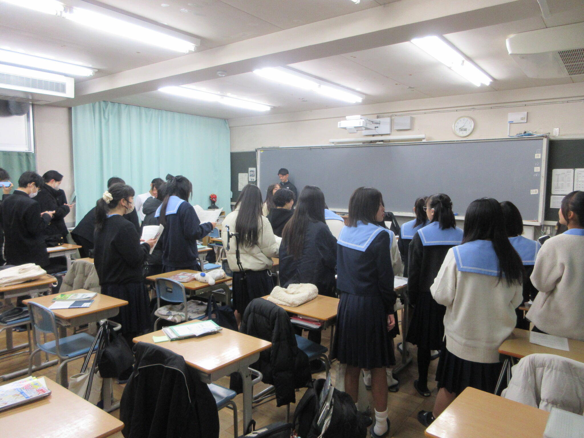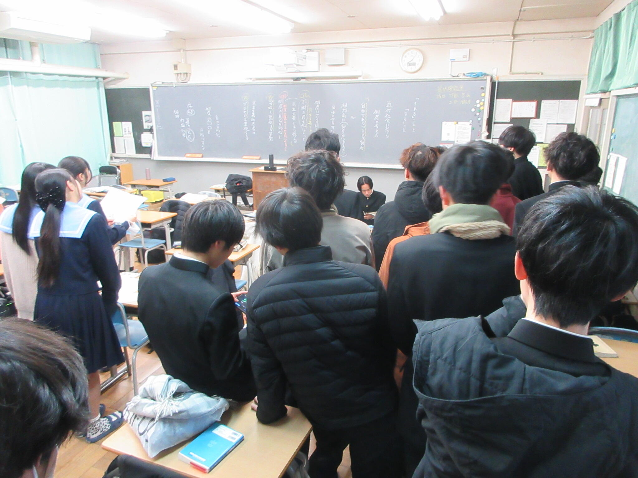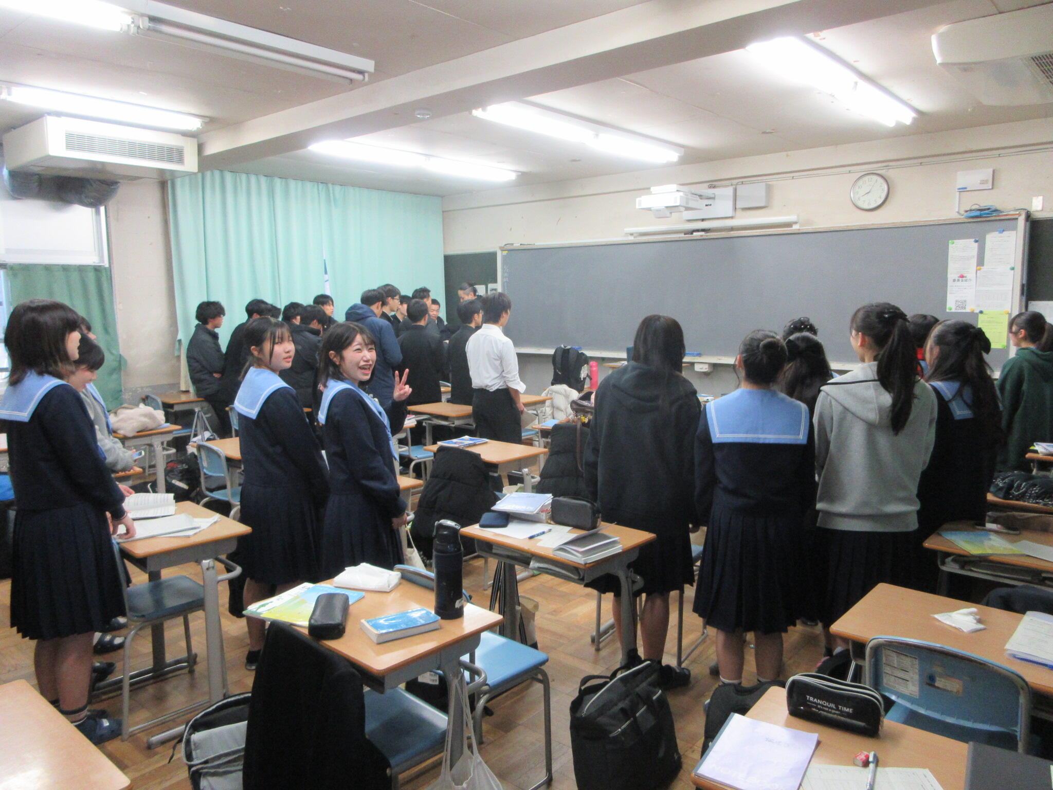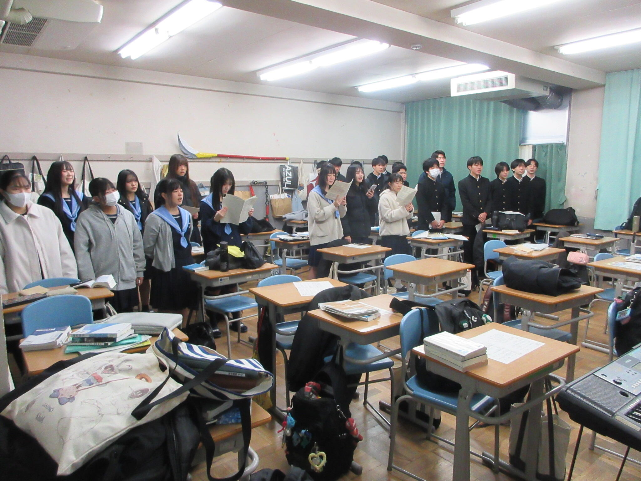 今日(12月12日)も朝の登校を迎えていますと、どうも登校してくる生徒が少ないように感じます。それもそのはず、2年生はどのクラスも来週の「合唱コンクール」の朝練で集まって、廊下には競うように歌声が響き渡っていました。本番は12月16日、フェニーチェ堺で開催です。