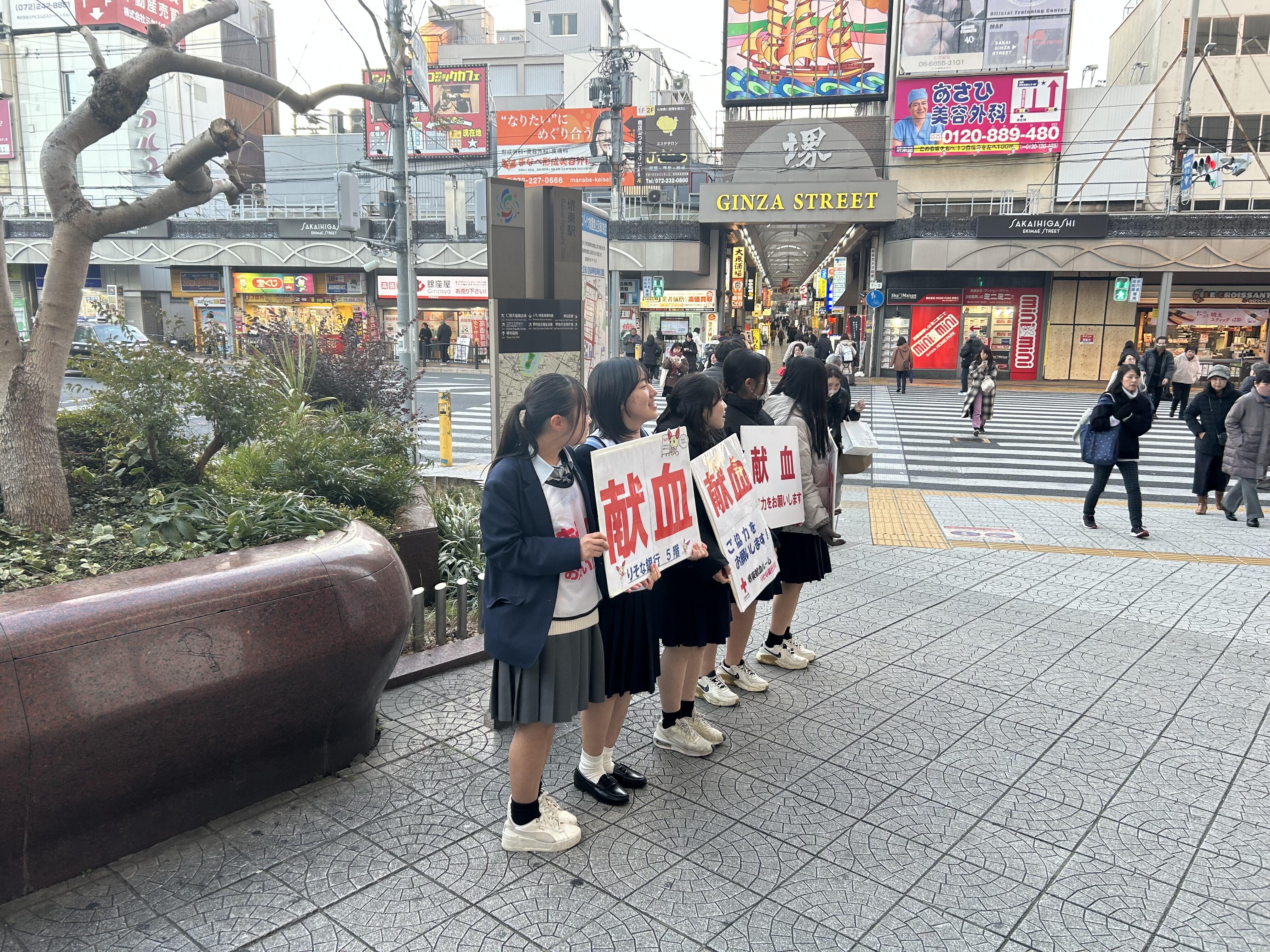 冬は献血者が減少し、血液が不足しがちになるそうです。そこで、一昨年から3年目となる堺東駅前での献血への協力を呼びかける活動を行なってきました。