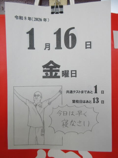 明日の共通テスト、この校長ブログから出題されることはありません。大学入試センターから「先生のブログ、問題に使ってもいい?」というお尋ねもなかったし。(そもそも、入試問題などは事前に許諾を得る必要はないですね。出典を記載する必要はあるでしょうが。もし問題文に「泉陽高校長ブログより」とあったら喜んでください。)