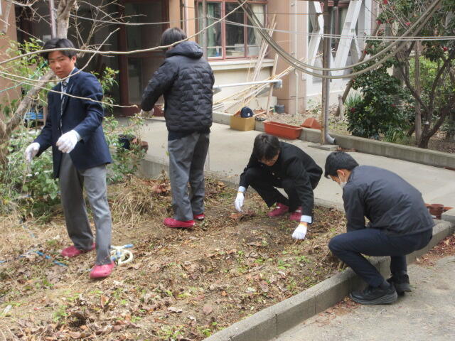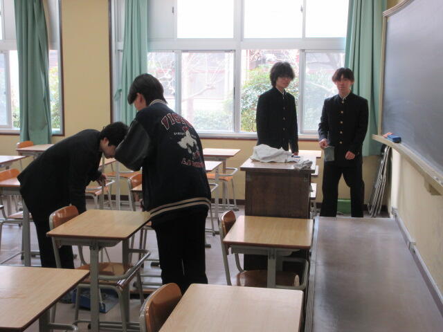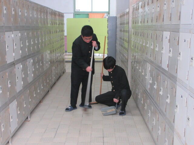 ↓ 終業式後、黙々と清掃に励む生徒たち↓ 各クラス、約8%の生徒が掃除をサボります