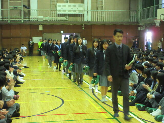 入学式の翌日(4月8日)は、朝イチで「対面式」が行われていました。まだどことなく戸惑う様子の新入生を、2・3年生は興味津々という顔つきながら、暖かな雰囲気で迎え入れます。毎年の風景ですが、互いの緊張感を感じる新年度ならではのイベントで、なかなか良いものです。