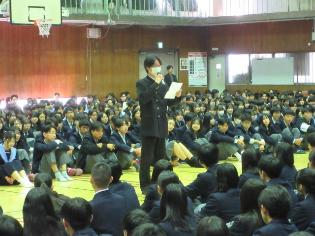 ↓ 校長講話に続いて、生徒指導の先生からのお話し。
