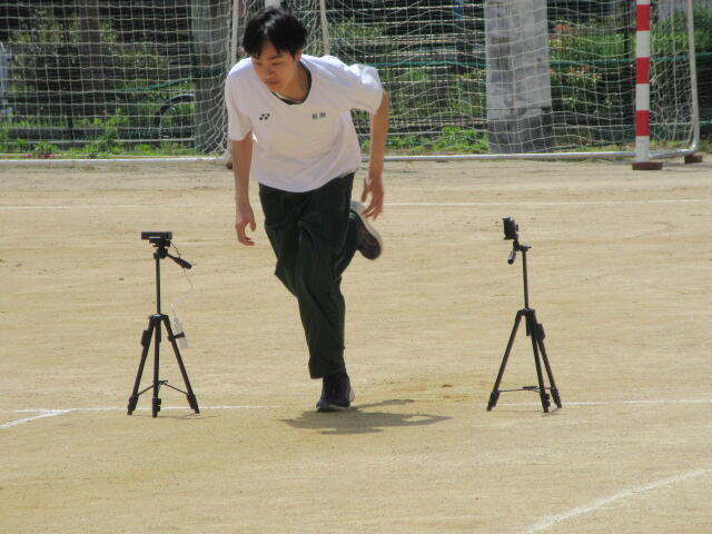 ↓ 唐突ですが、1年生の体育の授業。50m走の測定に、ストップウォッチなど使いません。時代は変わりました。