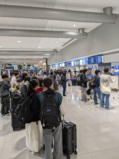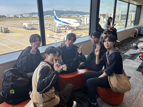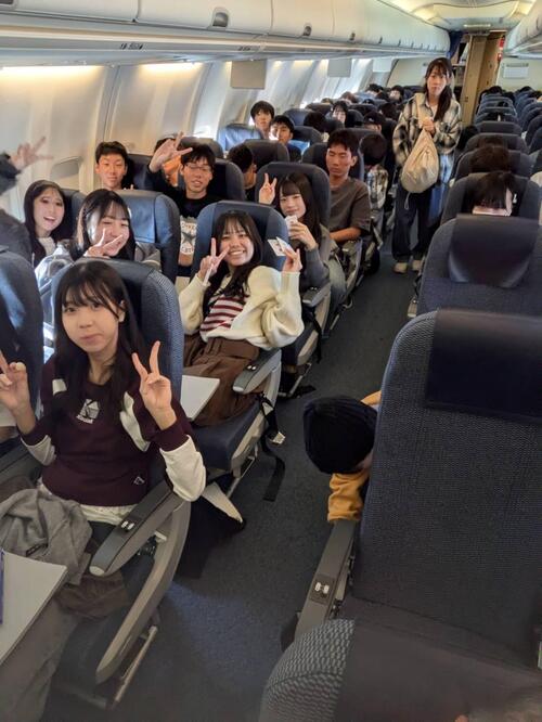 無事に全員搭乗完了!「飛行機や!」「席どこ?」「窓側うらやましい!」の声が飛び交う機内。これから空の旅へ。笑顔で北海道に飛び立ちます