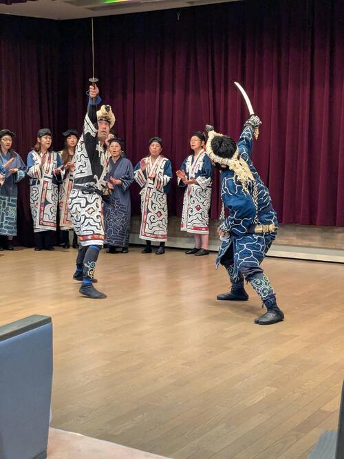 その後、沙流川歴史館で民俗舞踊の鑑賞と体験