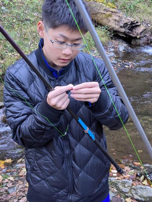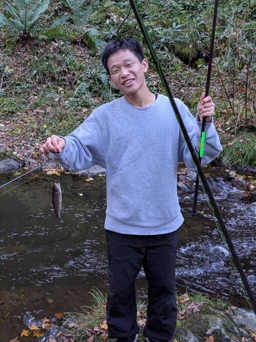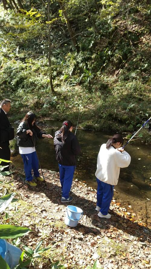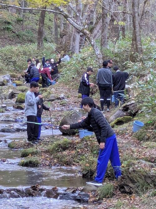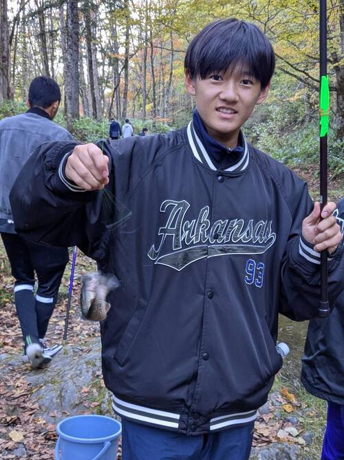 フィッシングです🐟 ニジマスを釣りました。インストラクターから教えてもらった話ですが、ニジマスは海でも生きていけるそうです。海で育つとサーモントラウトになり、よく回転寿司で食べられているそうです。海には赤い餌があるので赤身となり、川で育った魚は赤い餌がないため白身となるそうです。ほぼ入れ食いでたくさん釣れました。