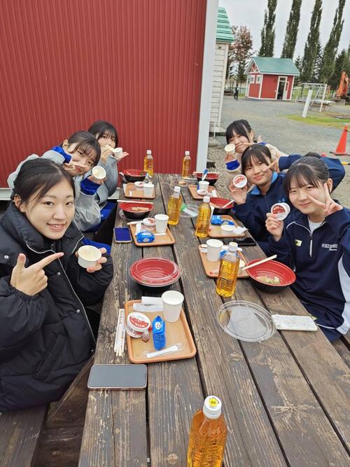 バター作り体験をして、お弁当とともに作ったバターを堪能しています。