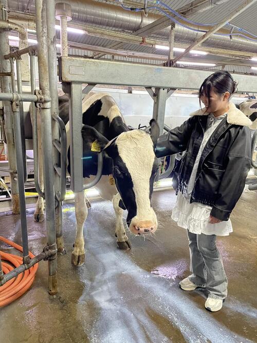 手絞りを体験させてもらっています。 実際には機械で絞っているそうです🥛