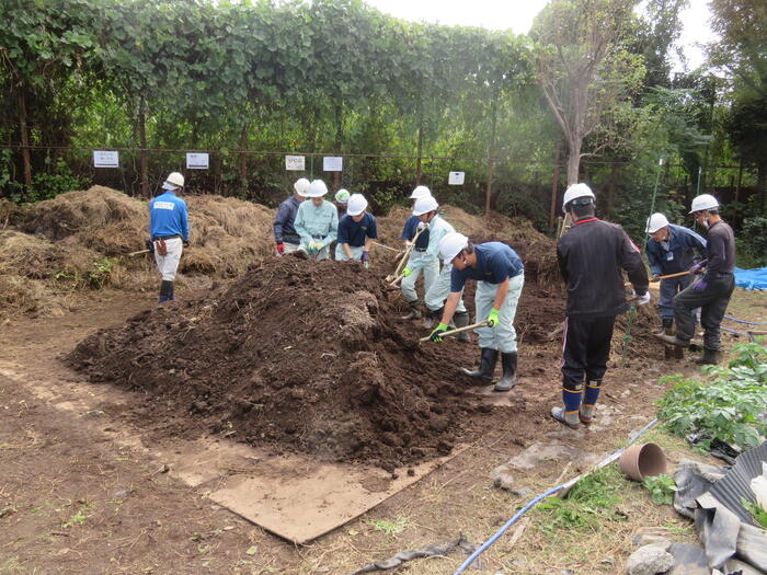 11月11日(火) 1~6限 農園にて 例年この時期に、淀川河川公園管理センターの方々にご指導いただき、畑に入れる土づくりを行っています。淀川河川敷で刈り取られた草と土を層にして積み上げ、定期的に掘り起こして積み替える「切り返し」という作業を行い土を発酵させるのですが、本日はその第1回めとして、草と土を積み上げる作業をしました。 本校の農園は、開校当時テニスコートの跡地に設けられたもので、かちかち...