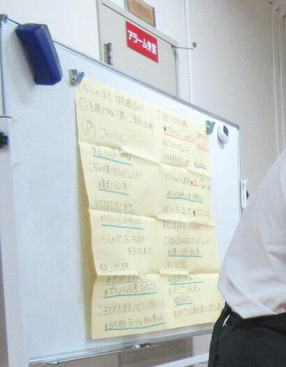 本日の目標は「マニュアル通りの接客をする」です。ホワイトボードに書かれたマニュアルに沿って接客に励みました。