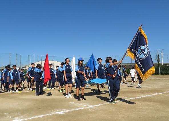 10月9日(木) 5・6限 運動にて 体育祭が2週間後に迫ってきました。本日は3学年そろっての合同練習を行いました。 初めての合同練習ということで、入場行進・校旗掲揚・体育委員長宣誓・ラジオ体操・退場駆け足などを、ポイントを絞って練習しました。 今年は、ラジオ体操を音楽ではなく掛け声に合わせて行います。体育委員の「1・2・3・4!」の掛け声に続いて全校生徒が「5・6・7・8!...