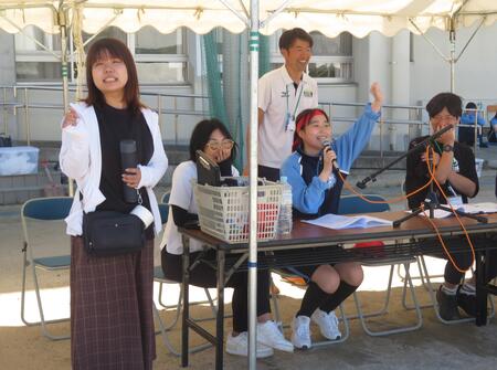 それから、見どころと言えば、生徒たちがスターターやゴールテープ、得点集計、道具準備、場内アナウンスを行います。生徒たちの主体的な体育祭運営。こちらにも、ご注目ください、