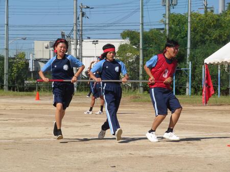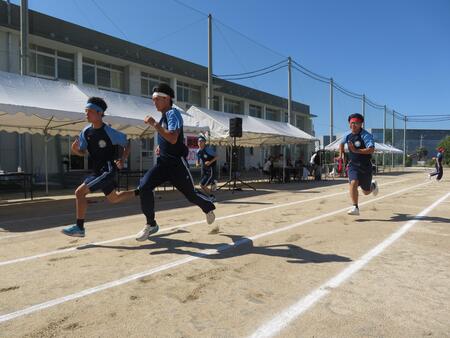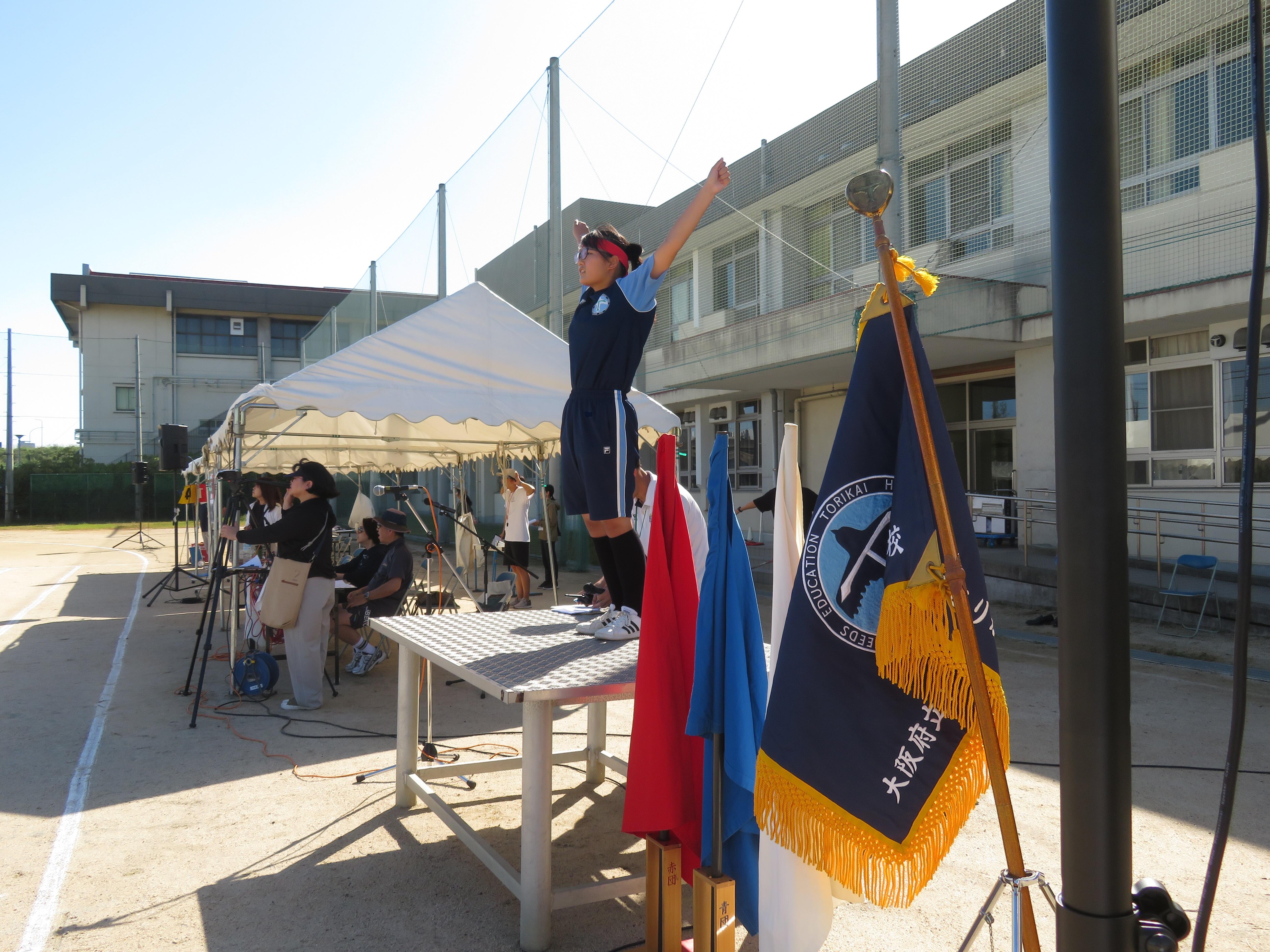 本日の締めは、団対抗学年リレーでした。第1走者、第2走者、第3走者・・・と、だんだん走る距離が伸びていきます。団の応援もクライマックスを迎えます。熱き最終種目に乞うご期待。