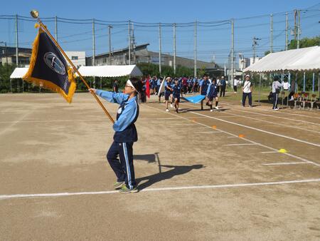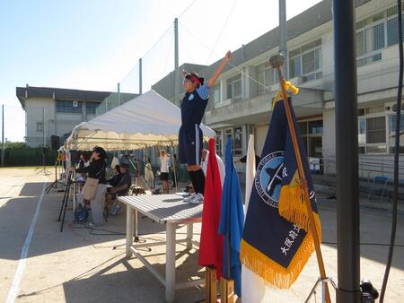 入場行進、ラジオ体操。ラジオ体操の掛け声が、全体練習①(10/9)の時よりかなり大きくなっていました。音楽なしでのラジオ体操。元気の良い掛け声に期待していてください。