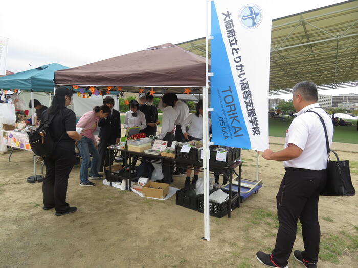 10月18日(土) 10:00~15:00 安満遺跡公園にて 高槻市にある安満遺跡公園に全国からハンドメイド作家さんが集まり、展示販売を行う「ハンドメイドフェス」が行われました。本校からも3学科「食とみどり科」「生産技術科」「生活科学科」が合同出店し、製品を販売しました。 各学科に所属する生徒たちが心を込めて作った製品を、本日は、3年生5人と2年生2人が販売しました。時間を区切って交代制で店番をし...
