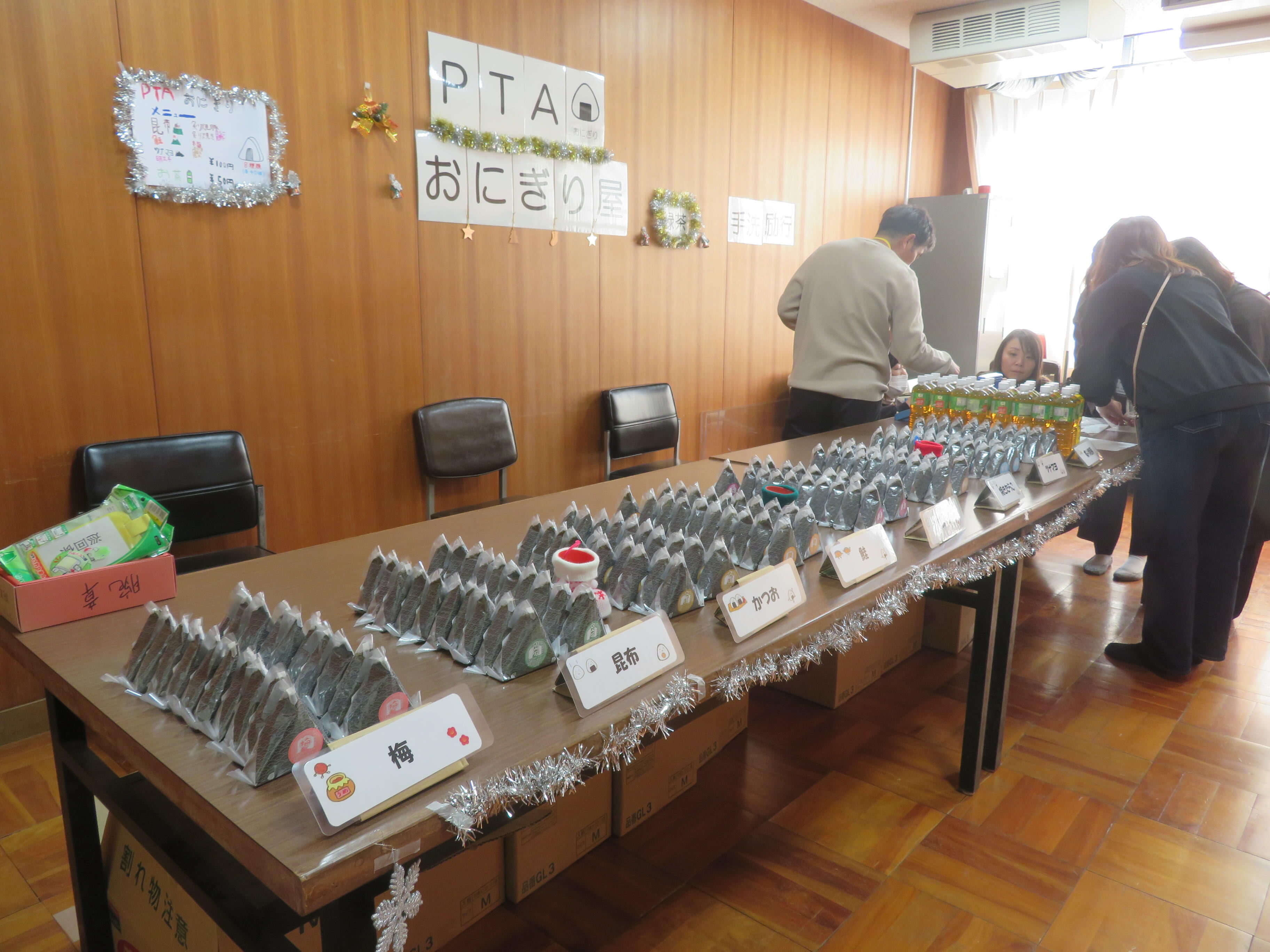 そしてPTAの役員さんによる「おにぎり屋」。昨年度までの経験を活かし、仕入れ量も多からず少なからず、完売しました。生徒たちや来場者の、午後の部への「活力」となる「おにぎり」の販売、ありがとうございました!