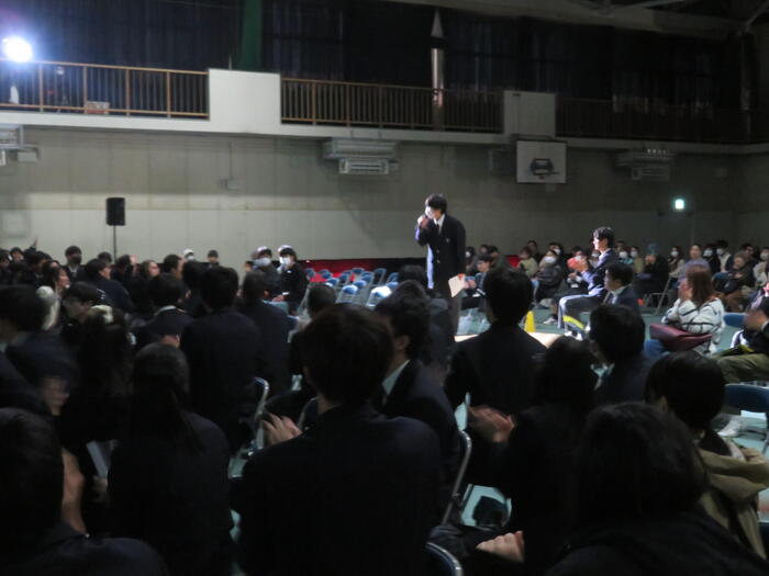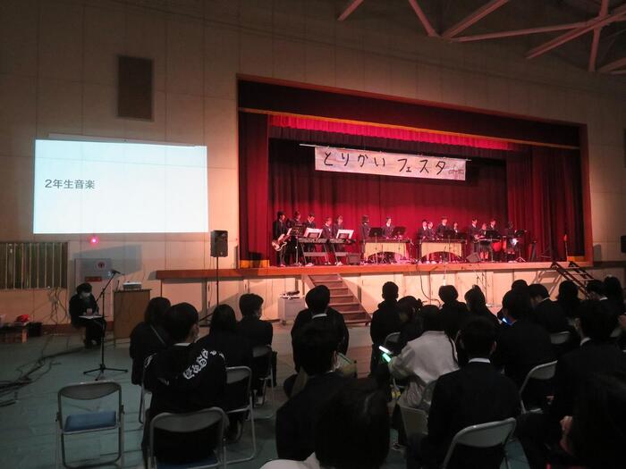 11月15日(土) 9:20~11:15 体育館にて 「その2」は有志の発表。軽音楽、クイズ、ダンスと多彩な舞台に会場は大盛り上がり。自由な発想の企画は、会場を大いに沸かせてくれました。 舞台発表は、舞台と会場の一体感が、何とも言えずいい感じでした。幕間の生徒会の皆さんの発表紹介やゲームも会場を盛り上げてくれました。 本日来ていただいた中学生の皆さんにも、生徒たちが自由に楽しむ姿...