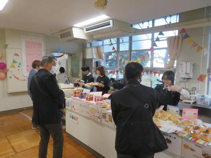 11月15日(土) 11:30~14:00 1階及び4階各教室等にて 模擬店の「その2」は、3年生の「パン販売」と各学科の製品・作物販売です。 3年生のパン屋さんはその名も「パンだよ、全員集合!」。開店前から長蛇の列で、開店と同時にほぼ売り切れてしまう盛況ぶり。こちらもこれまでの経験から仕入れを増量して臨みましたが完売御礼となりました。 この「パン販売」、ただパンを販売するだけでなく、各所での呼び...