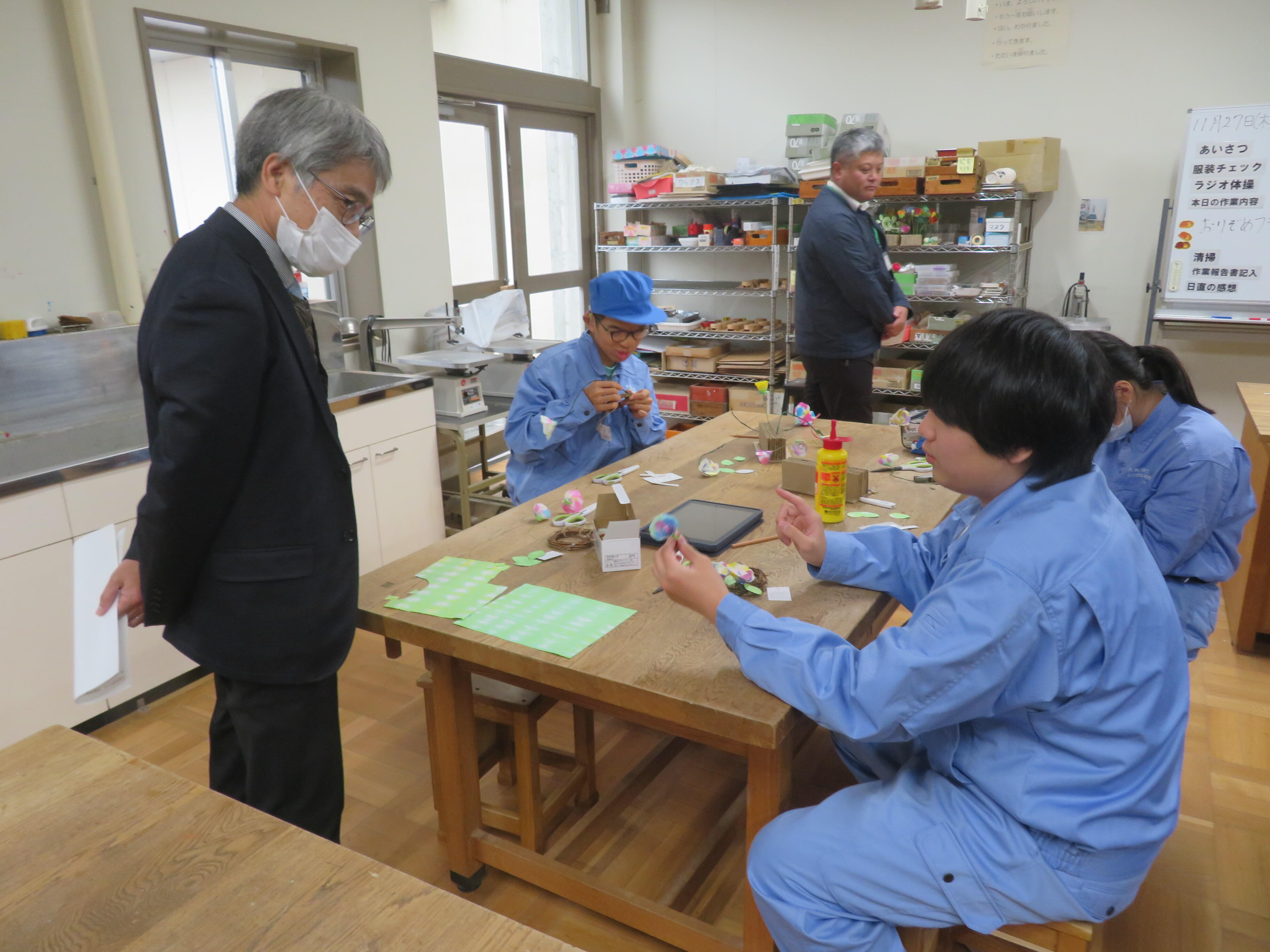 本日も協議会に先立ち、委員の皆様に授業見学をしていただきました。本日は1年生の3つの職業学科「生産技術科」「食とみどり科」「生活科学科」の授業を見ていただきました。
