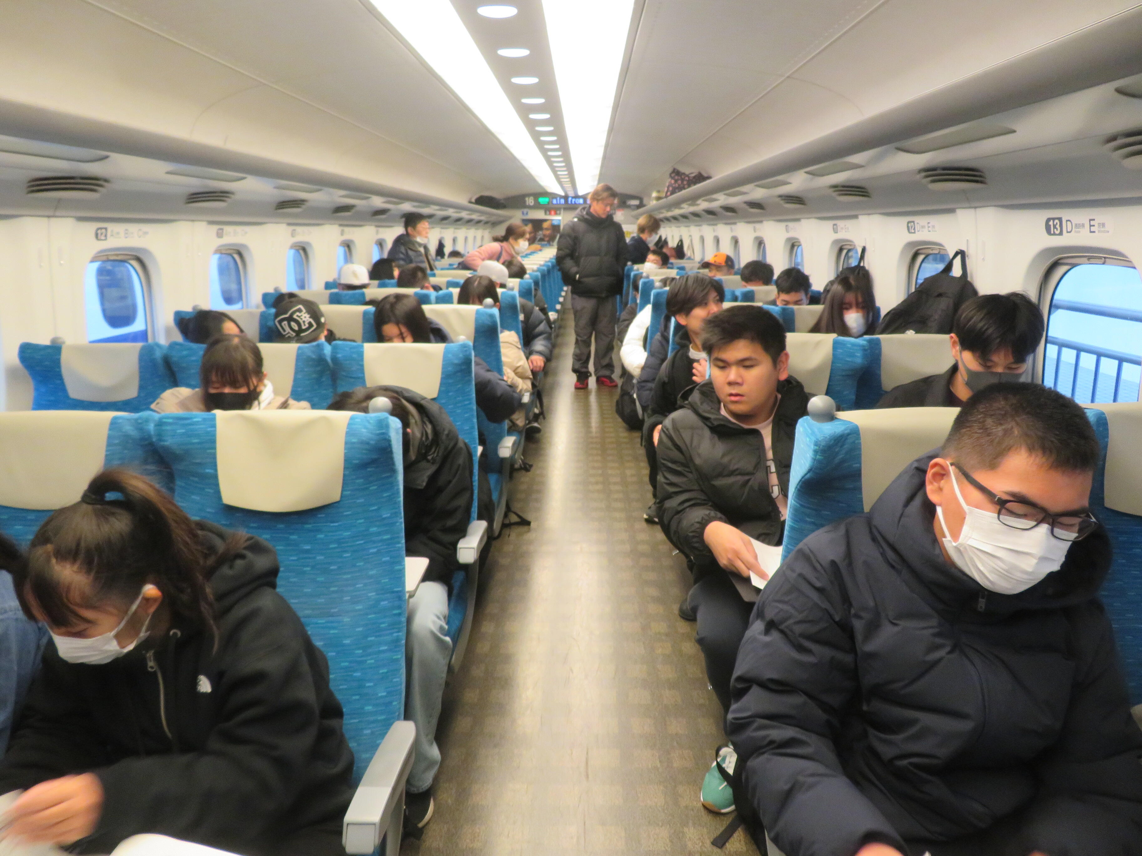 集合後、新幹線に乗ってすぐ、しおりへ所持金の記入。さすが研修旅行、行きの交通費の計算から一日が始まりました。