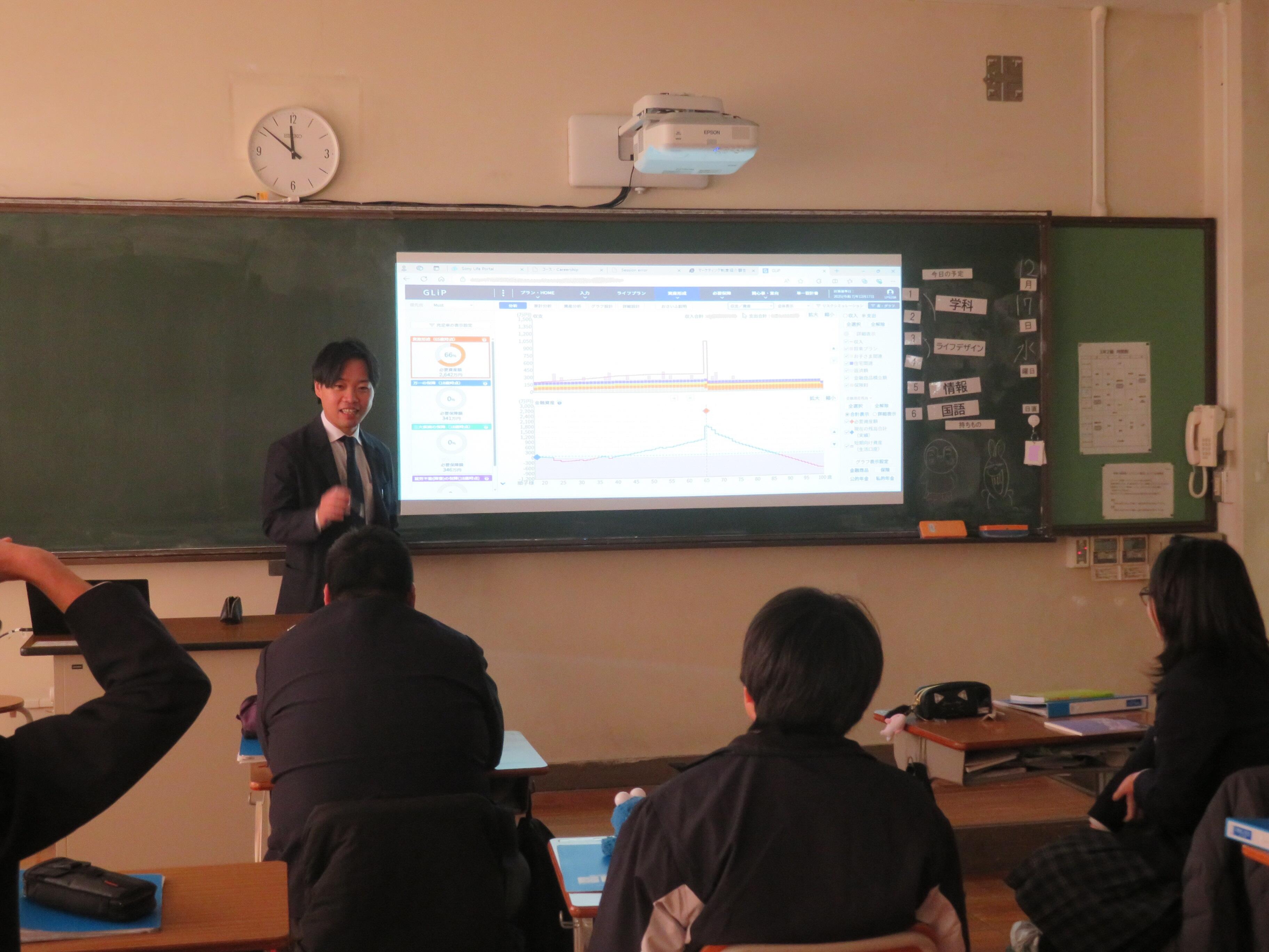 ところでこの講座、今年度で9年めとなる息の長い取組みで、ソニー生命保険株式会社 大阪中央ライフプランセンター第1支社の皆さまには、毎年本当にお世話になっているところです。本日も、講座の始めと終わりでは、生徒の姿勢や表情がいきいきと前向きに、わかりやすいくらい変化していました。きっと、これから始まる卒業後の人生に見通しを持てたからだと思います。本当に貴重なお話をありがとうございました!