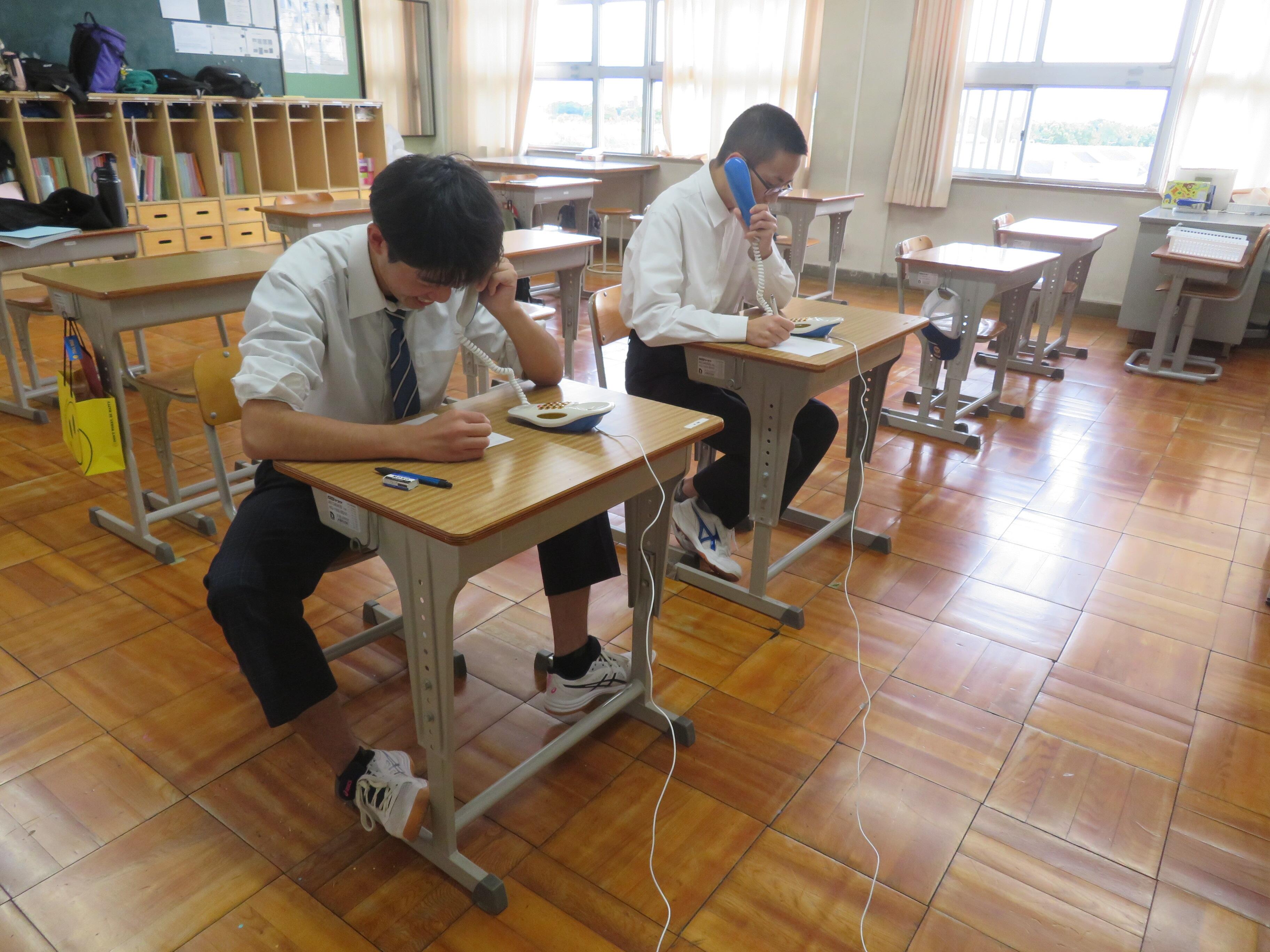 共生推進教室の2年生が、ビジネスシーンにおける電話の応対練習を行いました。隣り合う二つの教室を有線の電話でつなぎ、教員とやりとりを行いました。電話の向こうの人とのやり取りは、直接コミュニケーションをとる以上に難しいことを学んだようでした。