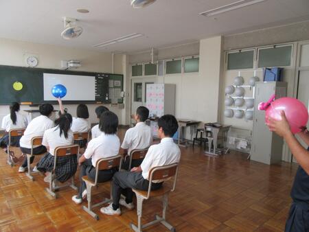 9月8日に約3年ぶりの皆既月食がありました。このタイミングを逃すまいと、理科の授業では、ボールを地球・太陽・月に見立て、太陽のボールに取り付けたライトで地球のボールを照らすことで、その仕組みについて学びました。