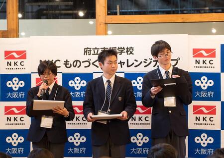 大阪府が中西金属工業様とタイアップし、子どもの持つ豊かな感性、大胆かつ柔軟な発想やアイディアを活かしたものづくりを応援し、一人ひとりの輝く個性を発揮できる新たな活躍の場となることを目的として実施している「府立支援学校NKCものづくりチャレンジカップ:詳しくはここをクリック」の最終審査会が開かれました。本校からは「生産技術科3年生」の「木製スマートフォンスピーカーver.2(縦置き型)」が最終審査に残り、審査会にて製作過程で工夫した点などを発表しました。その結果、みごと「フュージョン賞」を受賞しました!
