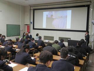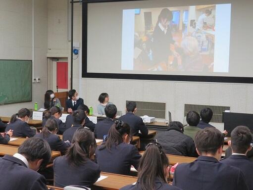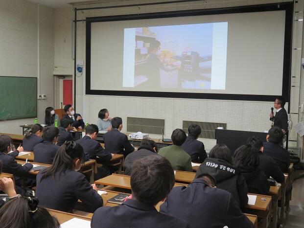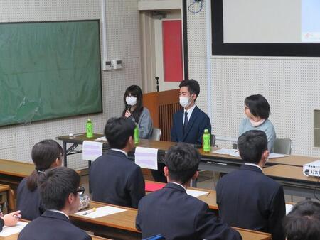 1年生にとっては、初めて会う先輩。ひたすら一生懸命にお話を聞き、メモを取っていました。2・3年生にとっては、一緒に学校生活を送った先輩。卒業して約10か月、実社会で活躍する先輩方が、身近でありつつもちょっと眩しい姿に映ったことと思います。