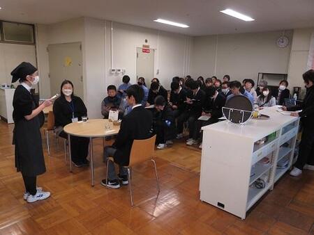 (11/26に行われた「進路学習:ここをクリック」でお世話になった「グローバルコミュニティ株式会社で勤めている卒業生2人も見学に来てくださいました。ありがとうございました!)