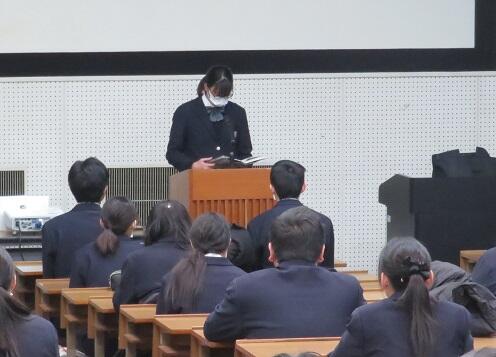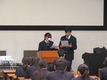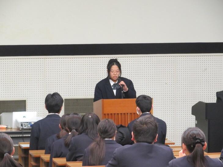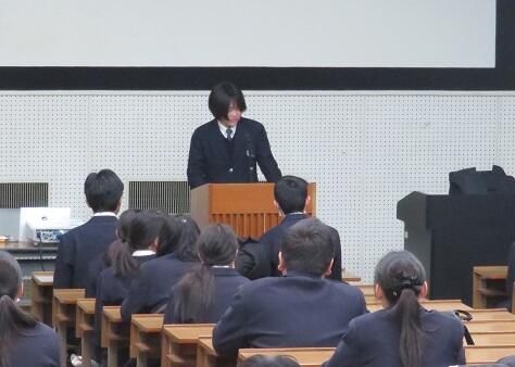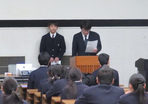 この時期、当たり前といえば当たり前なのですが、報告者は2年生が中心で、3年生から2年生へ委員会や生徒会の活動が引き継がれていることに感心しました。